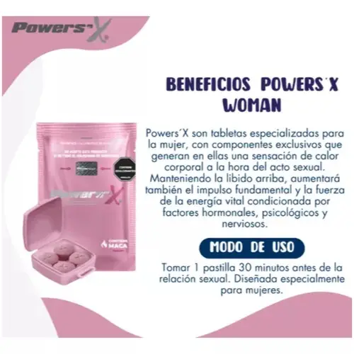Power Sex Woman suplemento con acción concentrada que actúa potencializando el deseo Sexual Femenino, son tabletas creadas especialmente para la mujer, con componentes exclusivos que generan en ellas calor corporal a la hora del acto sexual. Manteniendo también la libido arriba, aumentando ese impulso fundamental y la fuerza de la energía vital condicionada por factores hormonales, psicológicos y nerviosos.